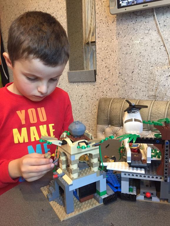 По традиции справляли ДР в несколько этапов. С утра поздравили родители - естественно, набором ЛЕГО! Теперь у нас в фаворе коллекция "Джунгли":