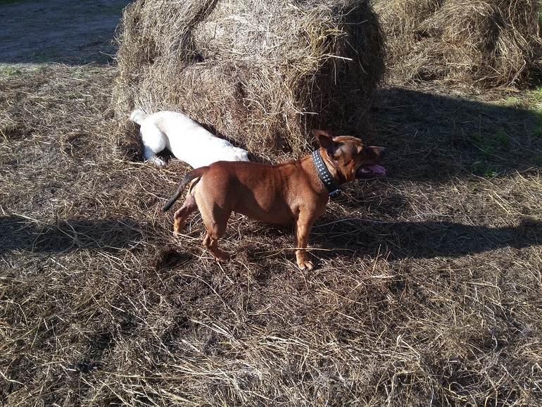 Там рядом есть фермерское хозяйство "У папика". Коровы, козы, хрюшки. Много сена и огромная поляна с навозом. Надо было видеть, с каким наслаждением (случайно влетев) наша собака купалась в навозе. Мы так ржали, что никто этого не сфоткал! А потом мы все дружно отмывали ее в Вуоксе.