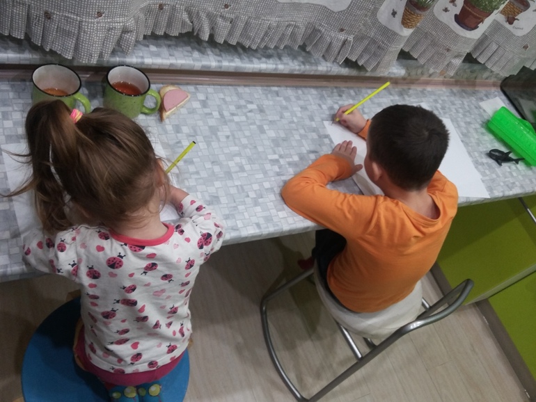 А дома у меня Вовка всегда рисует: