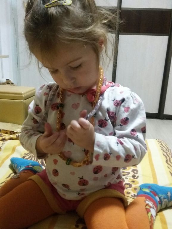 Любит Кира достать мою шкатулку и опробовать на себе все бусики:
