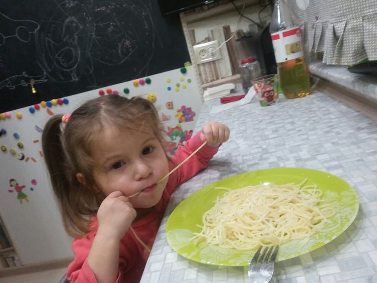 И одинаково с Вовой любят спагетти. Едят их руками, безо всего и всасывая со смехом кто быстрей: