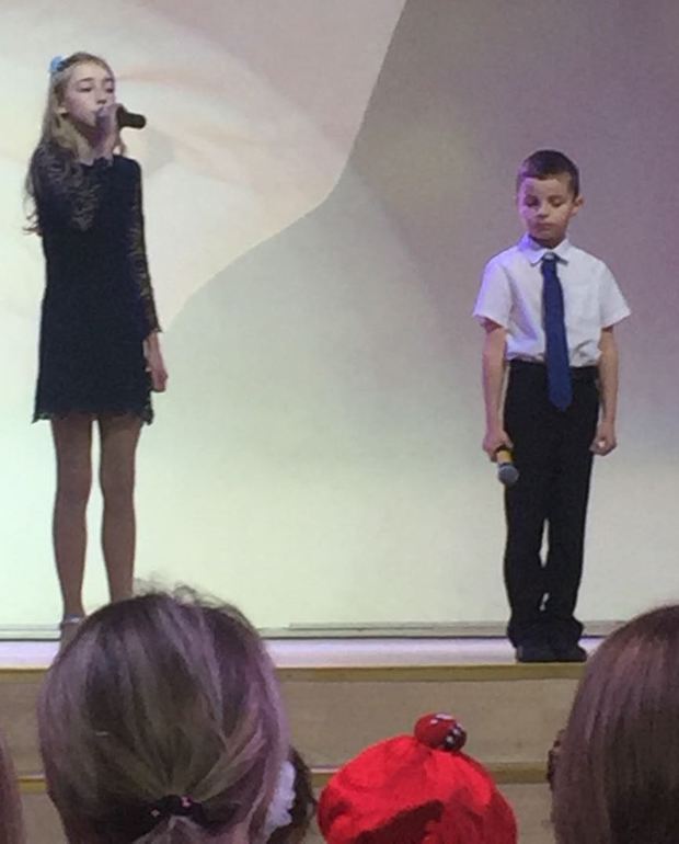 У школы в этом году юбилей - ей 50 лет. И бывшие школьники готовят большую поздравительную программу, в которой Вова тоже будет участвовать... вместе с мамой. Да-да! И Вовин дедушка Юра (мой 1-ый муж и отец дочери Юли), и Вовина мама (моя дочь) закончили ЭТУ школу! Три поколения учеников руководство школы не могло пропустить :)