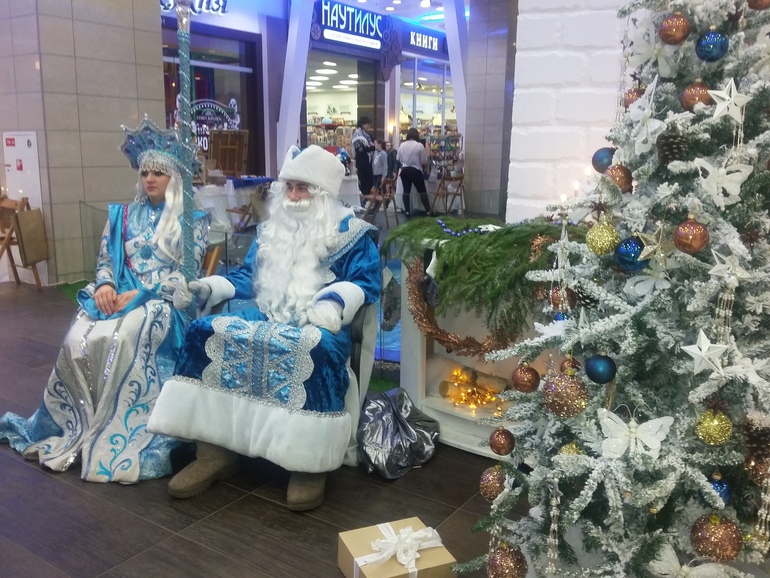 Всё пршло славно, народу понравилось. Я очень устала (для меня это была работа!) И только на прощанье уже сфоткалась с Дедом Морозом и Снегурочкой (для настроения):
