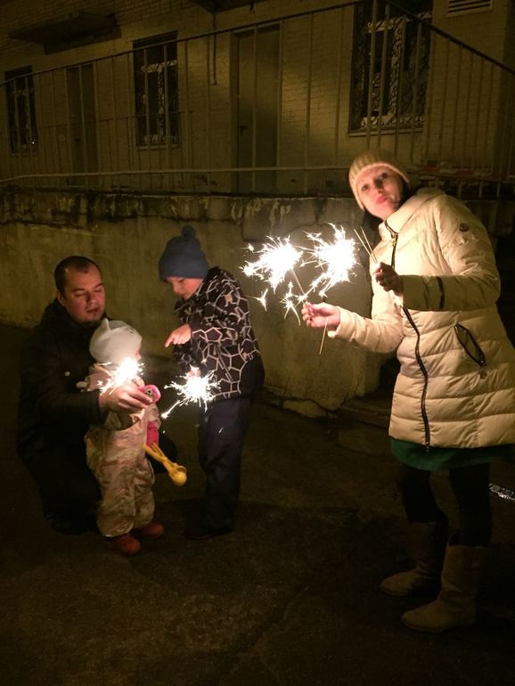 Вечером пошли пускать салют и жечь бенгальские огни: