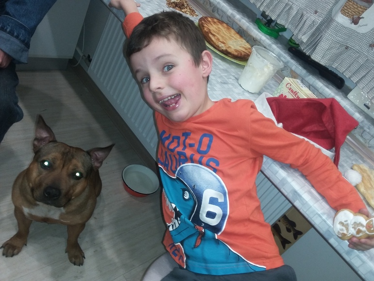 Ему нравится, как Кира играет с собакой :) И Вова теперь с ней дружит: