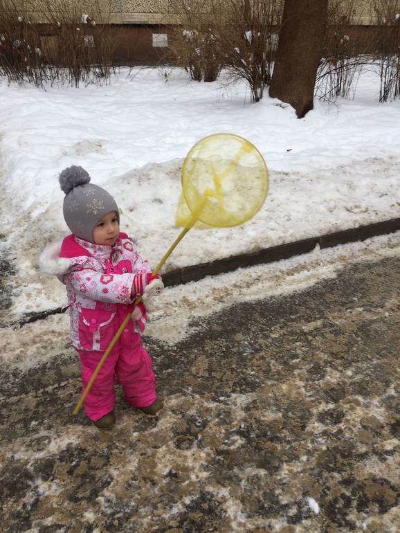 Почему-то именно это восхищает прадедушку. Вот, например, Кира решила, что сачок ей нужен на прогулке не летом, а сейчас. И не переубедить!
