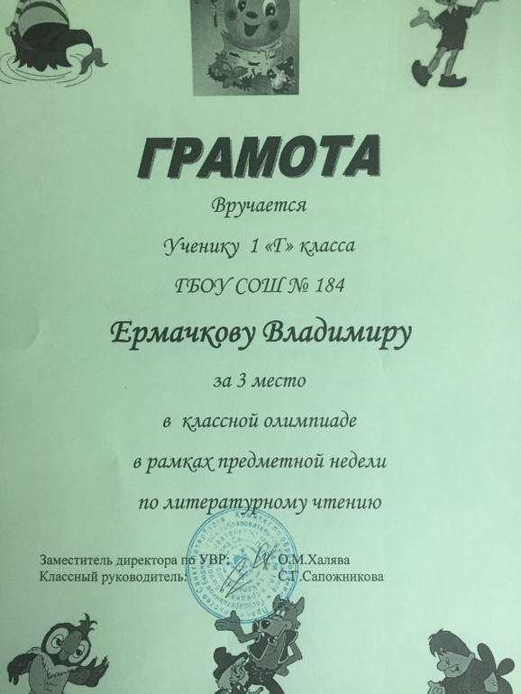 И в школе всё у Вовуськи получается. В конце третьей четверти это подтвердилось грамотами: