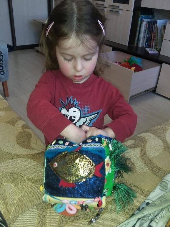 И с сшитыми мной для Вовика развивашками Кира радостно играет: