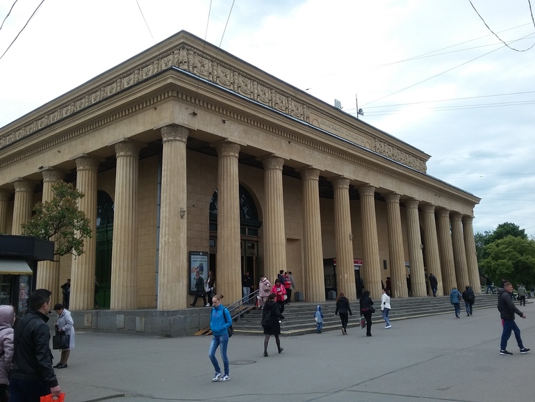 Сразу за метро легендарный Дворец культуры им. Горького - знаменитая театральная и концертная площадка нашего города: