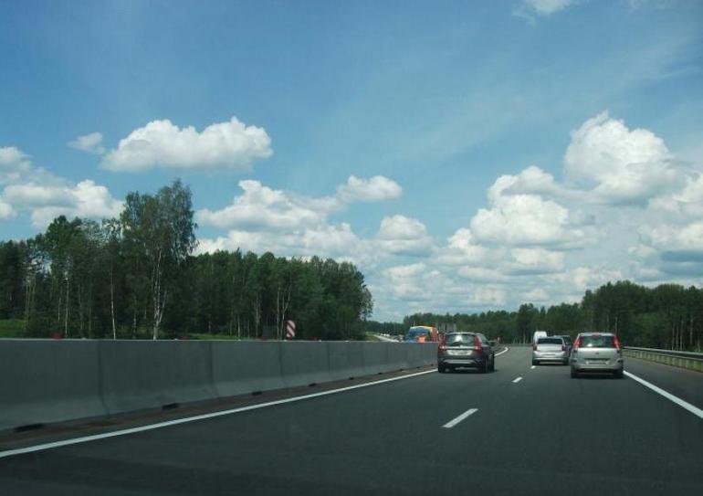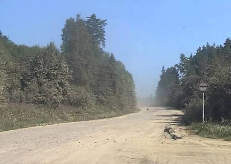 Едем дальше. 5 км дороги перед Карелией - глиняная гребенка и белая от пыли природа вокруг. Это трасса!!!: