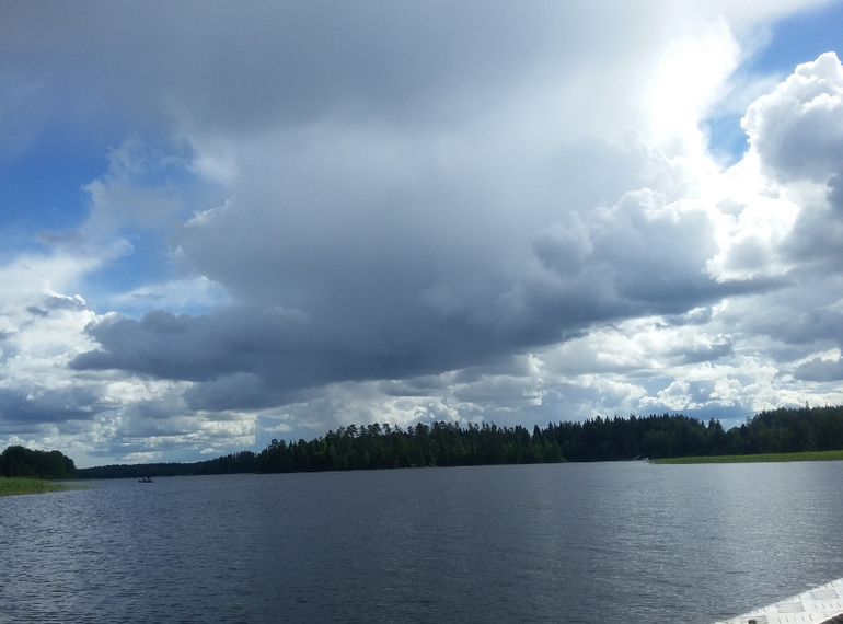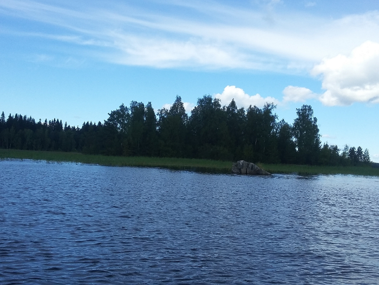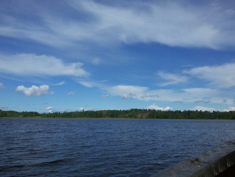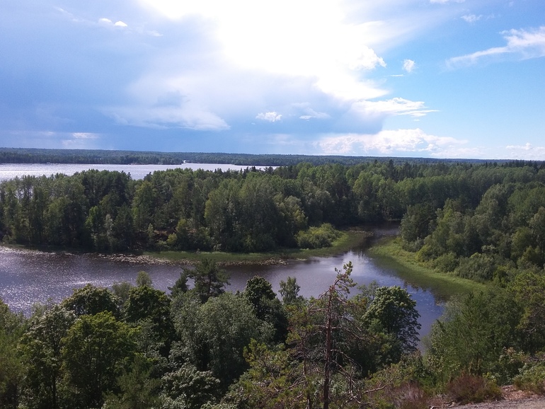 Едем дальше. Наш шикарный гид Андрей рассказывает по трассе о нашей истории. От 1 века и до 19. Очень интересно! Время пролетает незаметно и мы уже у церкви Андрея Первозванного, построенной на гранитном острове посреди Вуоксы: