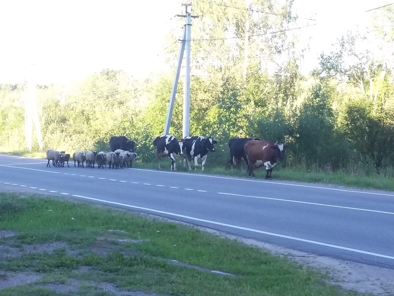 Пока собирались к автобусу, мимо нас прошествовало стадо:
