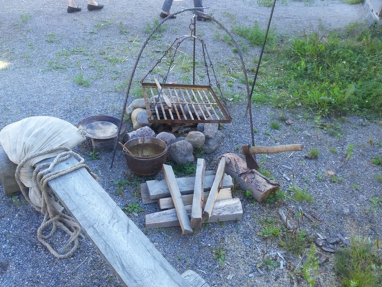 Там по предварительному заказу можно пообедать старинными блюдами. А экскурсантам предлагают кованые сувениры, деревянное оружие и свою медовуху :))