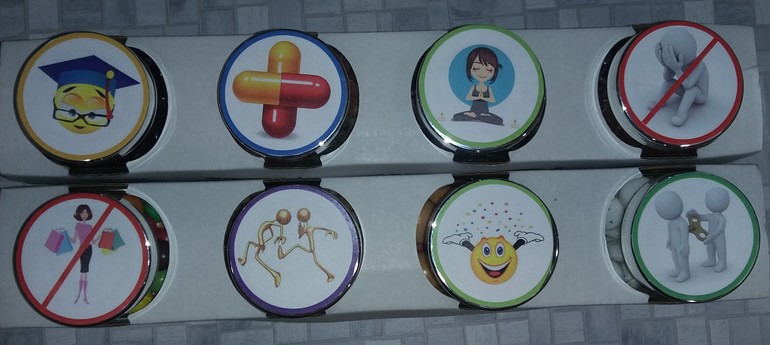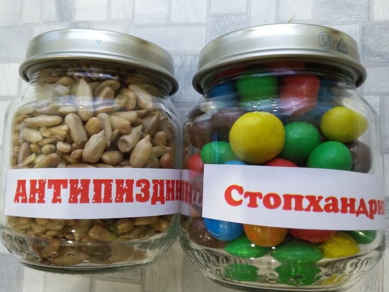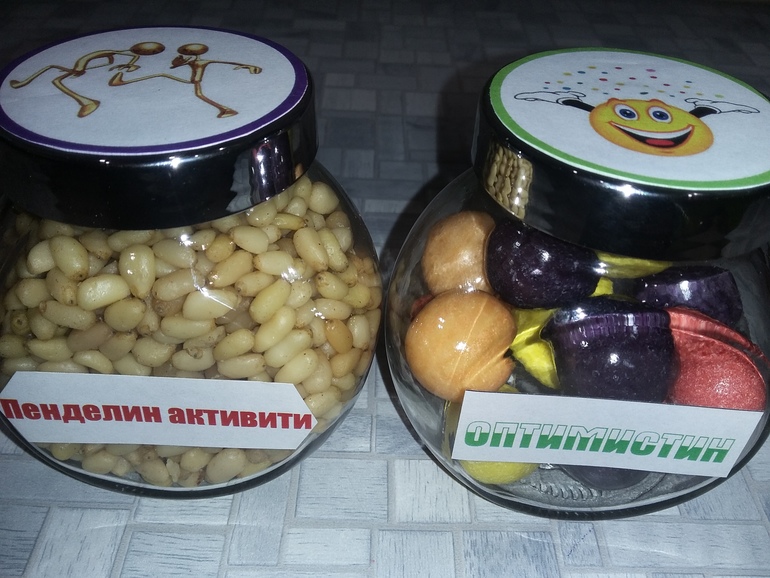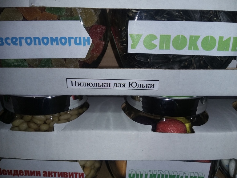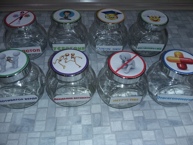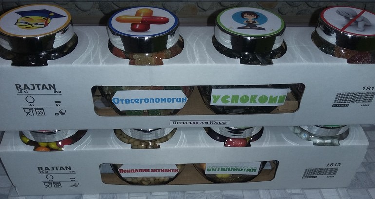 Распечатала на самоклейке придуманные названия и наклейки на крышки: