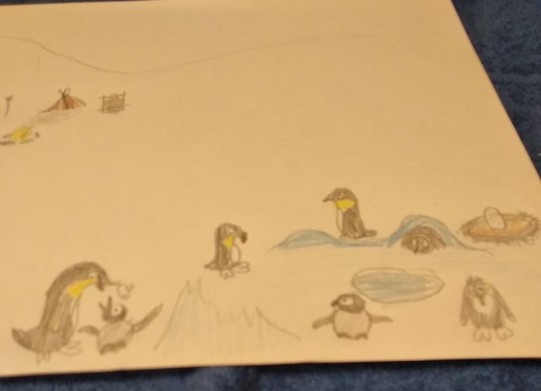 Прадедушка получил свои шуточные лекарства в подарок и рисунок от Вовы с пингвинами:
