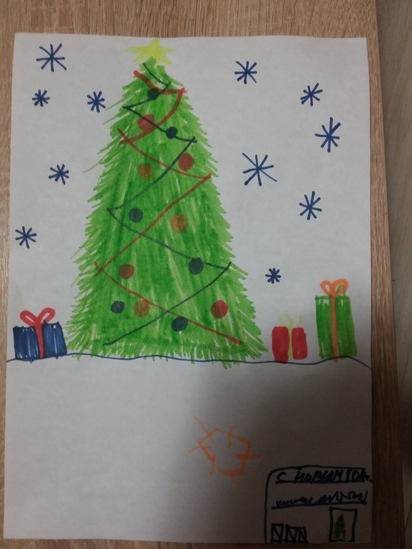 Ближе к Новому году дети стали рисовать ёлки-подарки:
