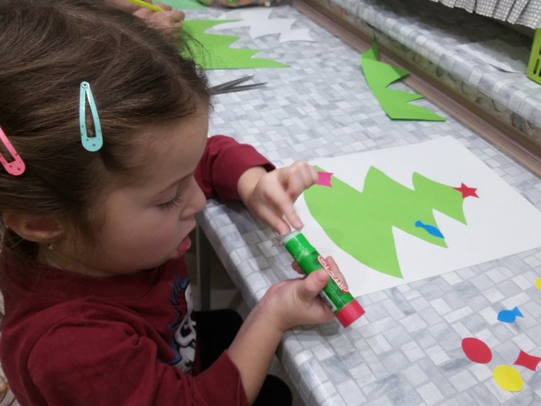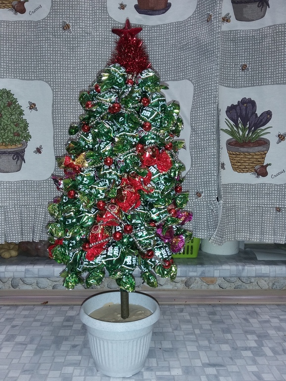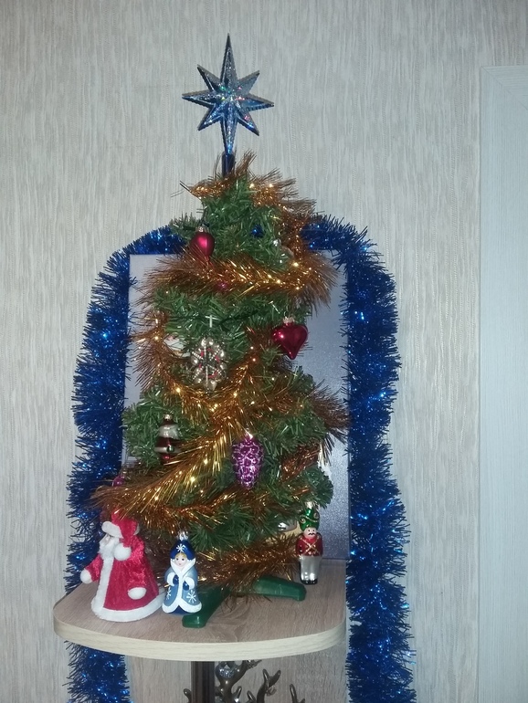 8 декабря мы с внуками украшали квартиры к новому году. Теперь и у меня все в мишуре и стоит ёлочка:
