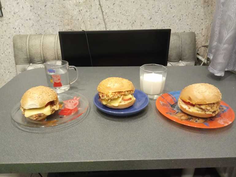 После выписки дома тоже были покупные фрикадельки и сосиски: