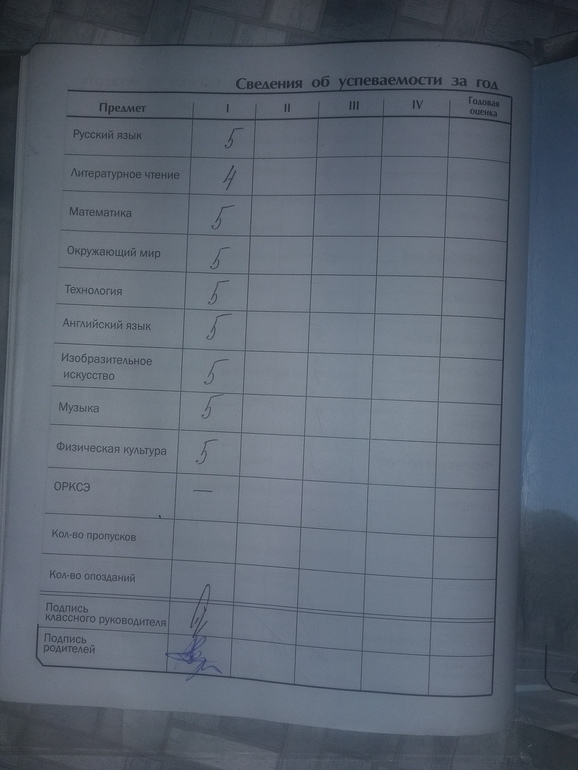 В конце дневника есть страничка с промежуточными итогами (как в обычном дневнике). Мы учимся четвертями, поэтому есть четвертные и годовые аттестации: