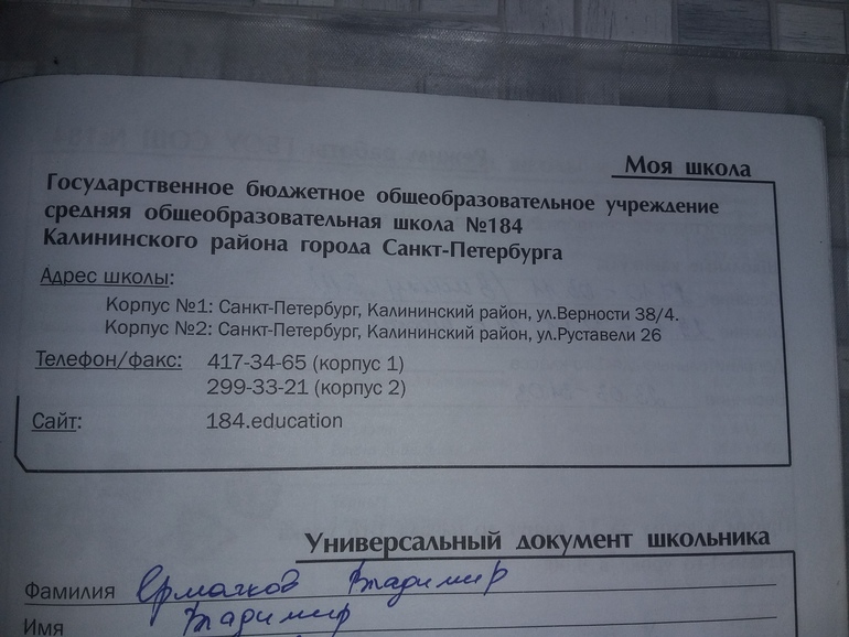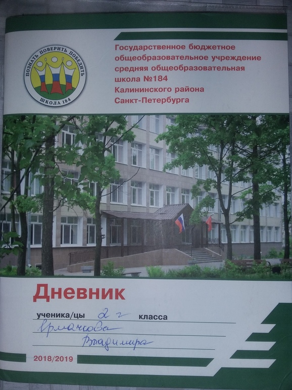 А теперь показываю дневник внука, который учится в обычной общеобразовательной школе Санкт-Петербурга (№ 184). И вот эта школа ежегодно делает свои собственные дневники и все учащиеся получают дневник в начале учебного года: