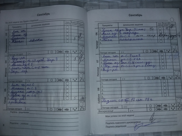 Дальше идут страницы дневника на каждый учебный день (и они типографски подписаны - страничку не вырвешь, дневник не поменяешь!):