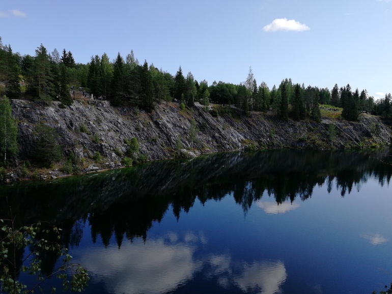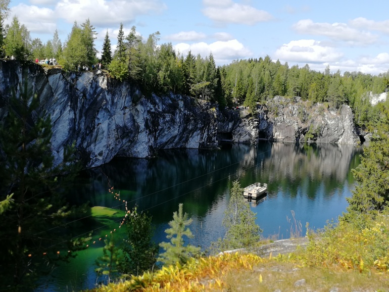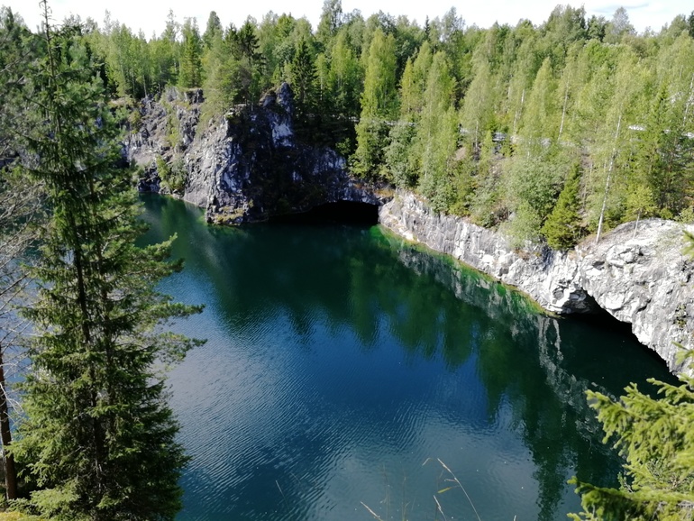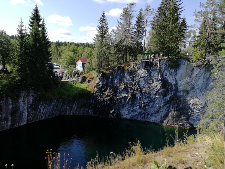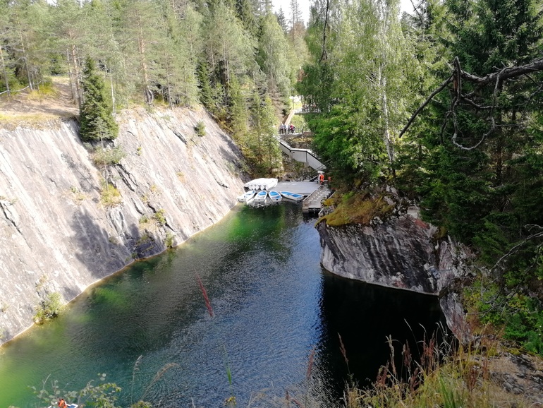 Но интересовал нас не фестиваль, поэтому мы вернулись к каньону, из которого, кстати, по приказу Екатерины второй добывали мрамор для строительства Исаакиевского собора в Петербурге: