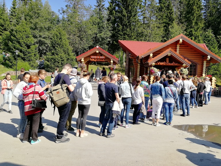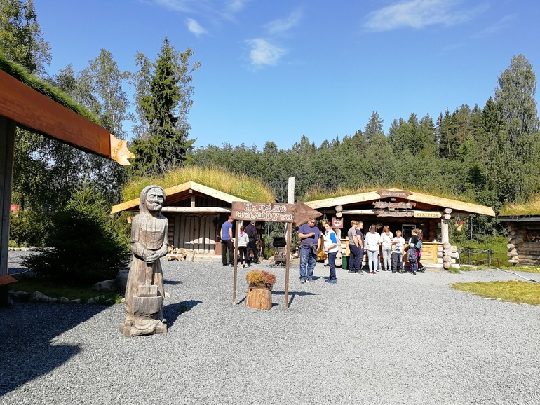 Гости сразу побежали за сувенирами (морошка, мраморные фигурки, мед, варенье):