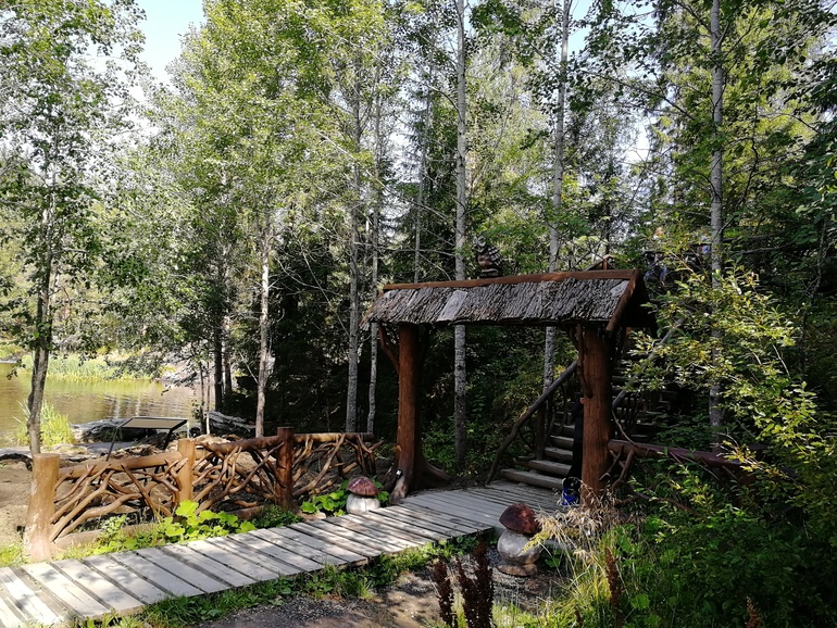 Купили мы билеты (200 руб.) и пошли к входу через домик с ветвистыми перилами: