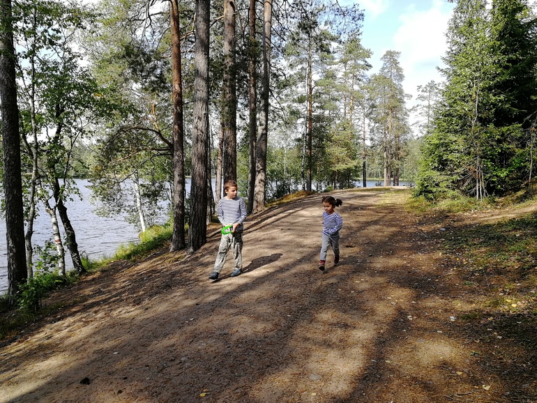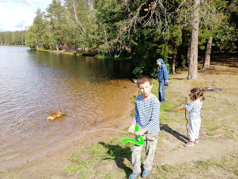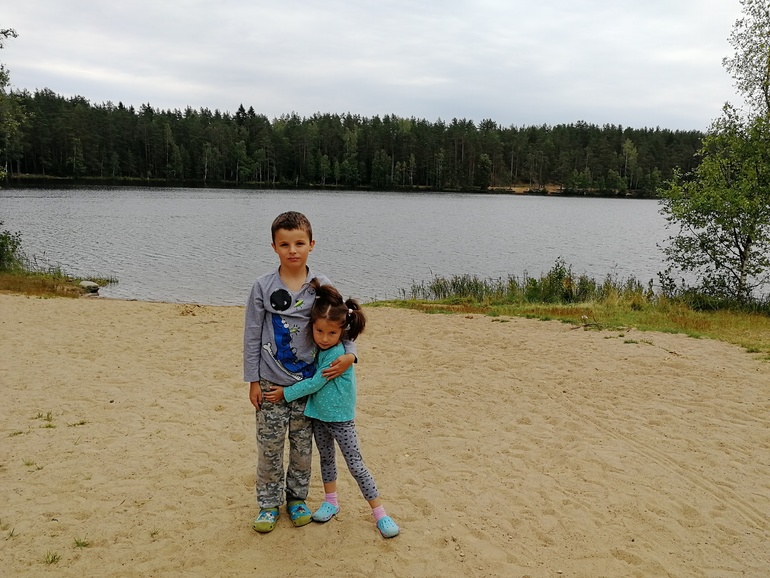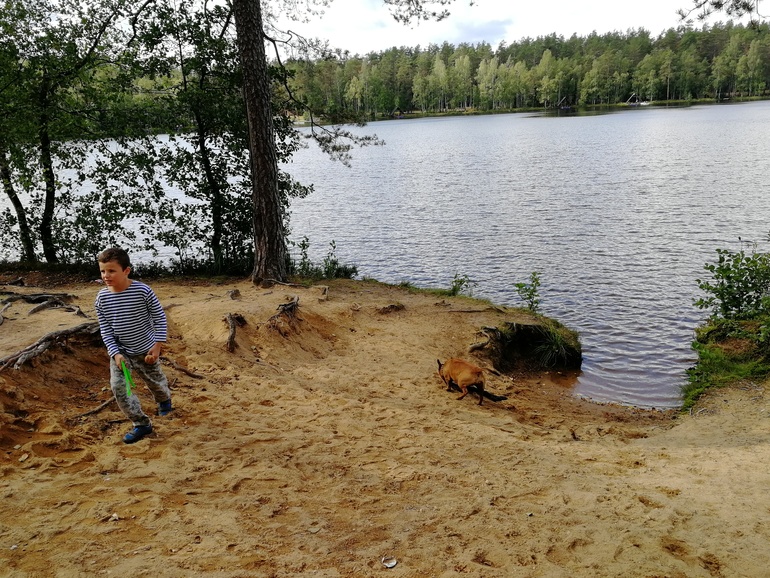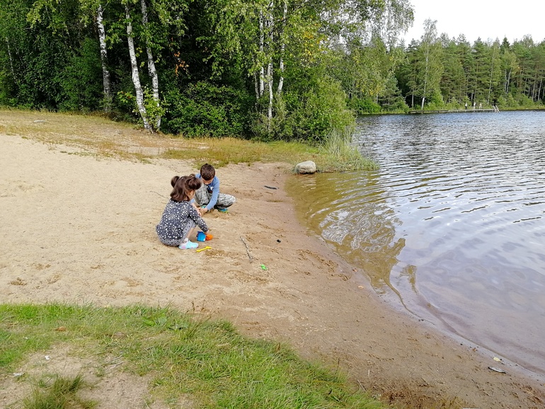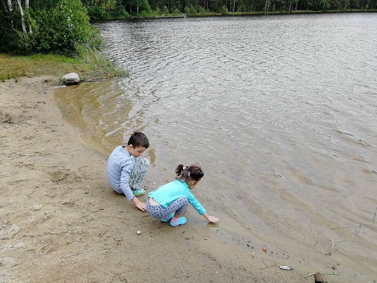 В первый же день пошли на ближайший песчаный пляж (их 4 на озере Монетка):