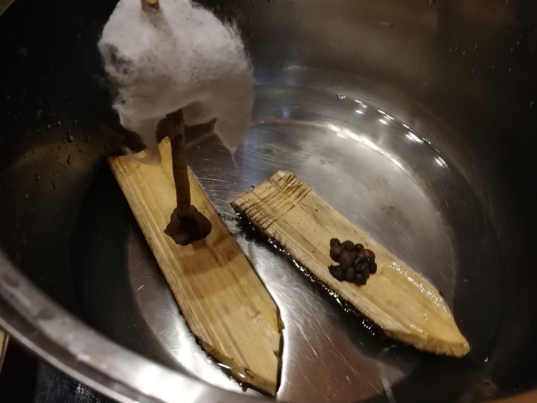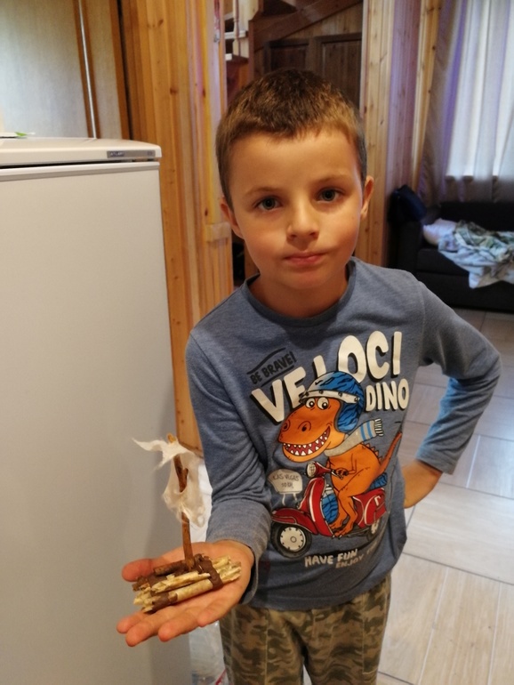 А потом и сами с детьми смастерили деревянные лодочки из длинной щепки: