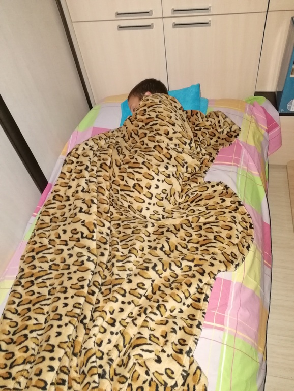 Накануне поездки забрала внуков с ночевкой к себе. Вова спал на специально купленной надувной кровати: