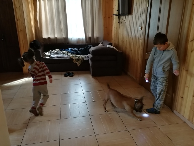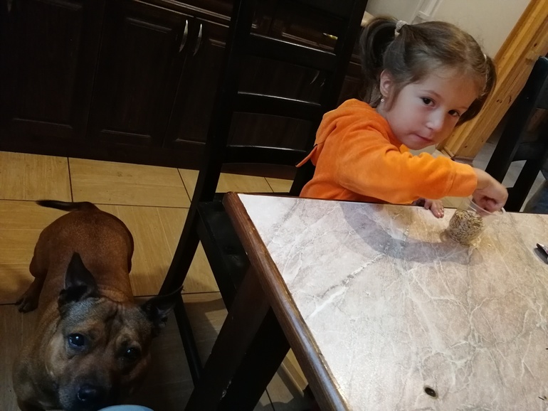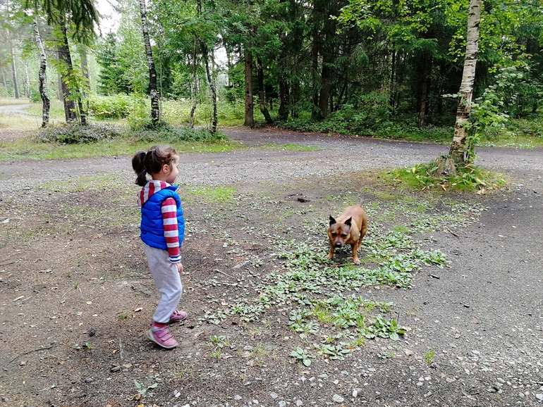 Дети много играли с собакой (и ей на пользу такая активность - жиреет прямо на глазах):