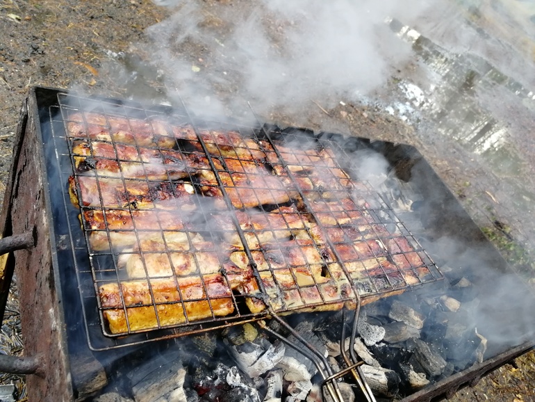 Каждый вечер мы зажигали мангал. Была у нас на ужин и форель на гриле, и шашлык, и крылышки, и ребрышки: