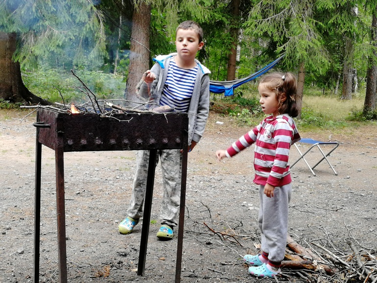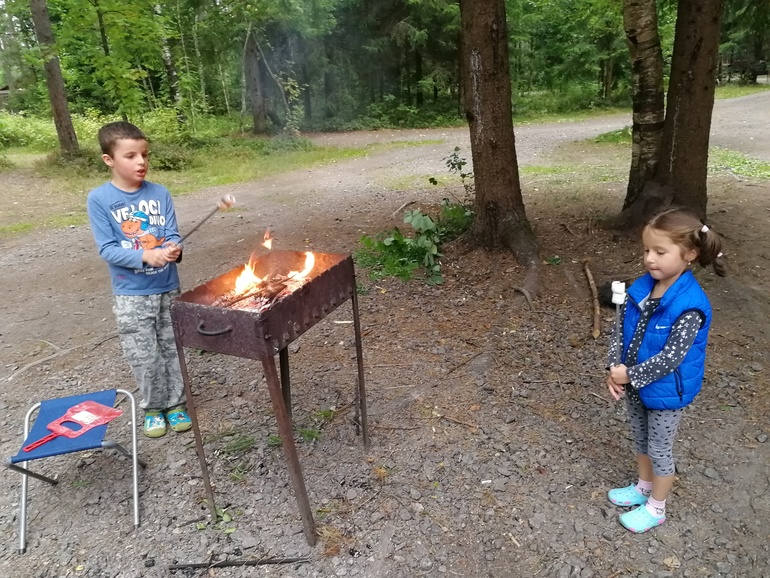 И хлеб мы там поджаривали, и маршмеллоу на шампурах грели: