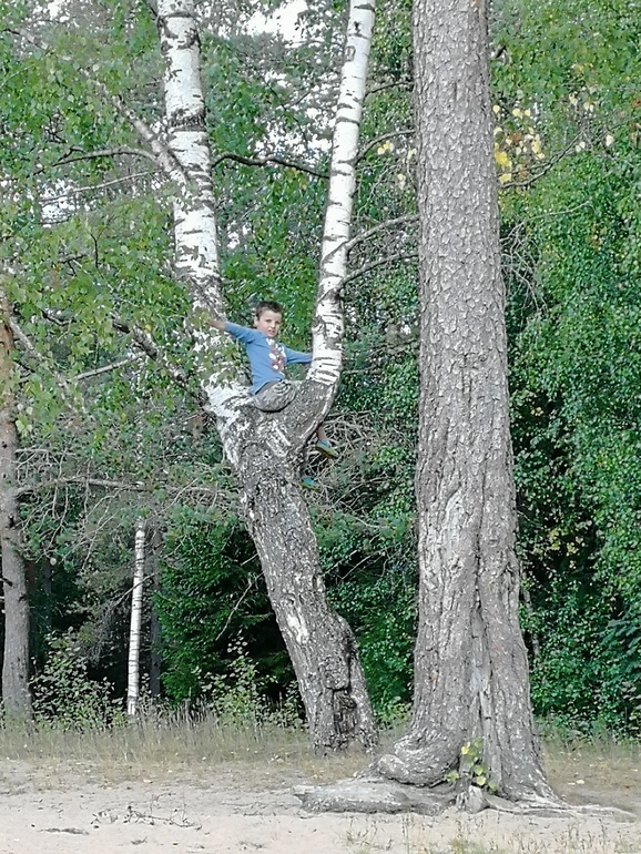 Мы собирали с Кирой цветы, а Вовка в это время залезал на все подходящие деревья: