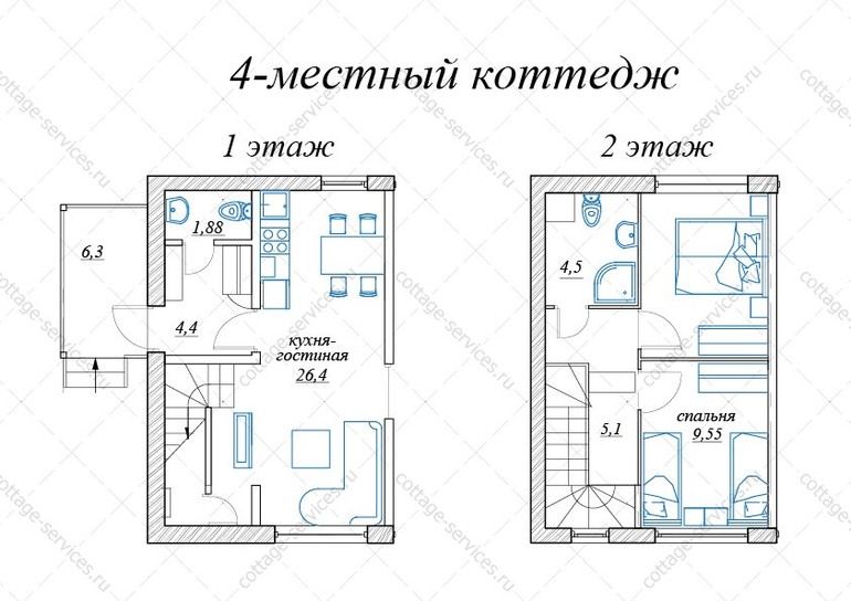 Кстати, кровати - односпальные, одинаковые в обеих спальнях: