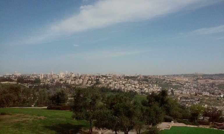 В передаче корреспондент рано утром бежал на Масляничную гору, чтобы сделать хороший кадр. И у меня есть такой же вид на утренний Иерусалим: