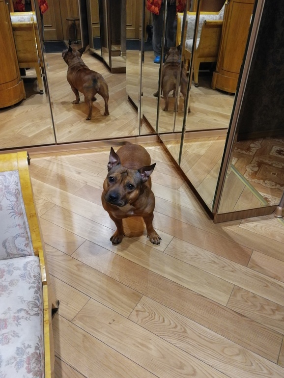 Она вообще от меня не отходит, ласковая Бетька. И дед, по-моему, ревнует... Я ухожу/прихожу - она встречает в коридоре:
