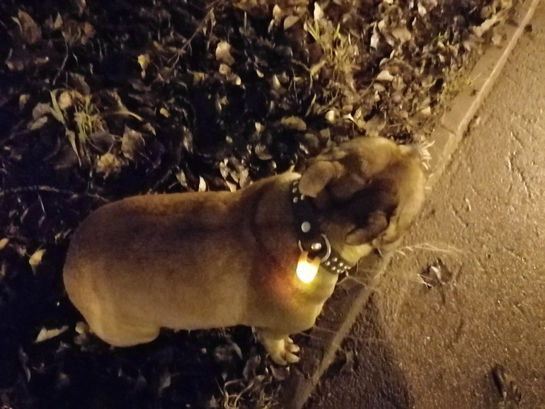 Светящийся маячок на собаке нам очень нравится, теперь мы точно видим где эта рыжая бестия пытается съесть какую-нибудь гадость на улице :)