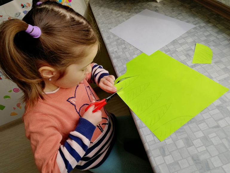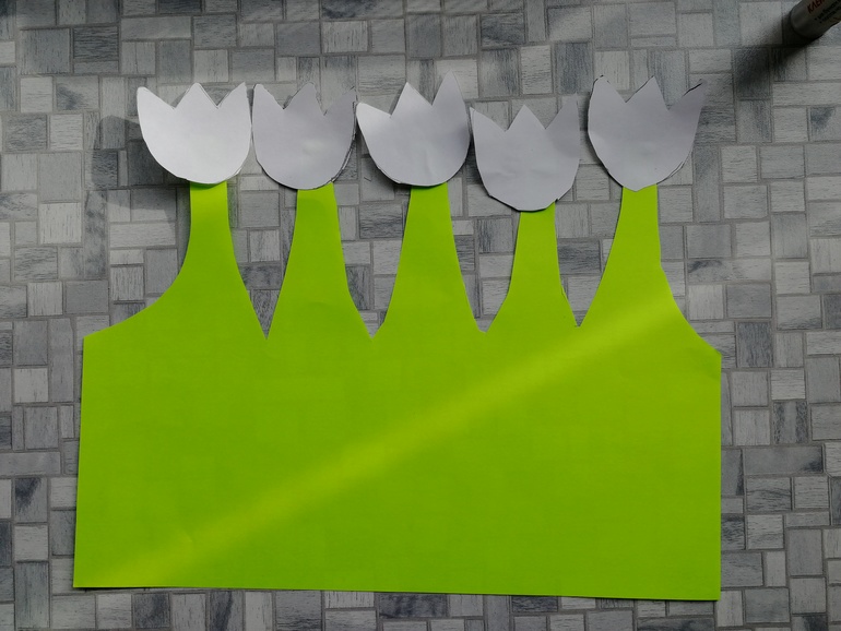 Сначала на зеленой двухсторонней бумаге рисуем стебли: