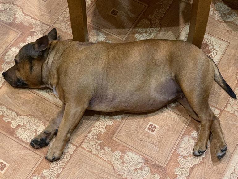 Какая маленькая и стройная раньше была наша пёська! А теперь у нее широкая мордуленция: