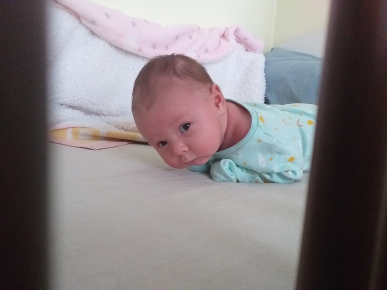 Хорошо держим головку, смотрим по сторонам и реагируем на звуки. Кушает доча 7 раз в день по 100 гр молочка. Иногда даю ночью смесь когда нет сил сцеживать грудь. В основном молока хватает на все кормления. Спим по 2,5-3 часа. Ночью бывает по 4 часа сна. К нам пришли газики, колики😕 хоть сама плачь вместе с дочей. Наш папа уже освоил все прелести нахождения с дочей. И памперс поменял, и покормил. Живём то дома, то у бабушки😊 как хорошо что есть мама которая подскажет и поможет. Не представляю как мамочки один на один сутками с детками.🙈 Очень переживала насчёт домашних животных, но всё в порядке. Алергии нет не на кошку не на собаку. 11 пойдём к педиатру в первый раз, узнаем сколько уже накушали. По домашним весам примерно 1500-1700. 🤩