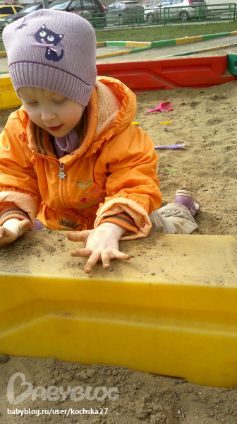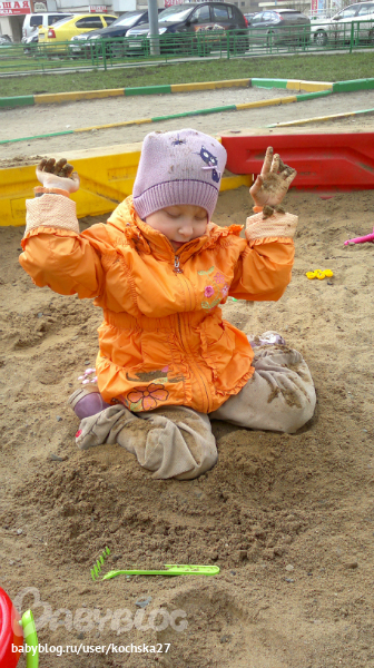 Вышли мы на улицу сегодня, Вика добралась до песка, в итоге от куда я песок потом не вытряхивала)))