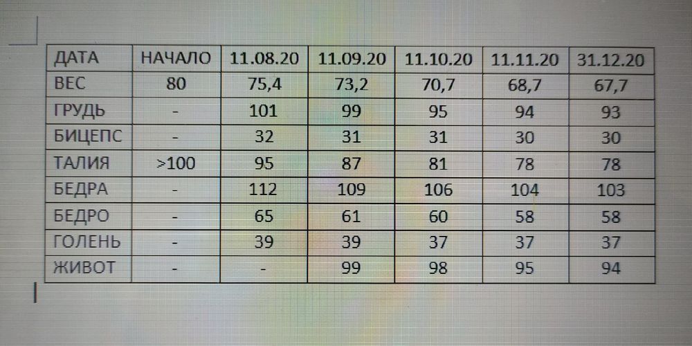 Итак ,я снова в деле))) Взвешивание и замеры я провожу 11 числа каждого месяца. Теперь буду оставлять их тут. Предыдущие результаты тоже выпишу. Записи я стала вести не сразу,а только когда увидела первые достижения ,до этого не верила в свои силы. Итак, прошлый год 2020:
