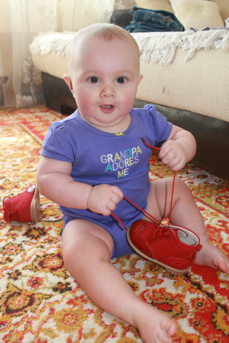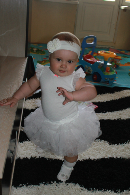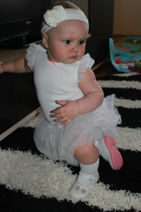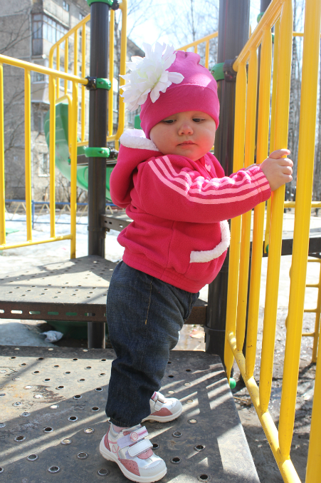 Еда: все так же плохо, мясо ни в какую, кашу с горем пополам, овощи перестала тоже есть баночные, более-менее ест фрукты и пару ложек творожка. Спасаемся пед. прикормом. Но что она съедает-совсем чуток. В это месяце мама стала смелее и много чего дала попробовать: авокадо, апельсинка оч. понравилась, хлебушек не оценили пока, огурчик и даже бабушкину котлету-в руках повертели п крутили и выкинули, не нравится нам мясо-не нравится! А так фантазия моя что-то страдает- не знаю уже что придумать, что бы такого дать попробовать еще.Сыр всегда ест (сыроманочка моя), пробовали разные сорта), яблоко, банан, груша, перчик. Пьет водичку хорошо из чашки, забыли и про бутылки, и про поильники. С трубочки пьем йогурт.
