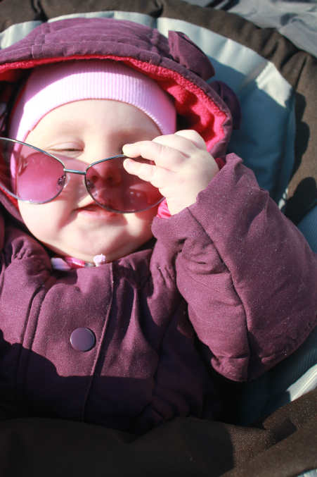 Пару раз, гуляли совсем как взрослые, выходили после сна, так просто воздухом подышать да наряды выгулять:))))Исследовали детскую площадку, качались на качелях с папой!