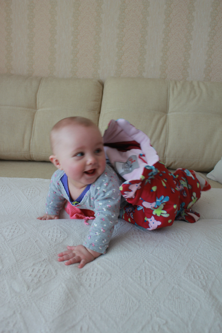 А еще мы танцуем: иногда стоя, иногда сидя на попе, такая забавная при этом, наша девчонка! Ручками вертит, попой елозит, ножками пританцовывает:)))