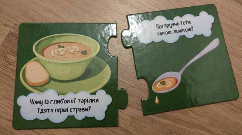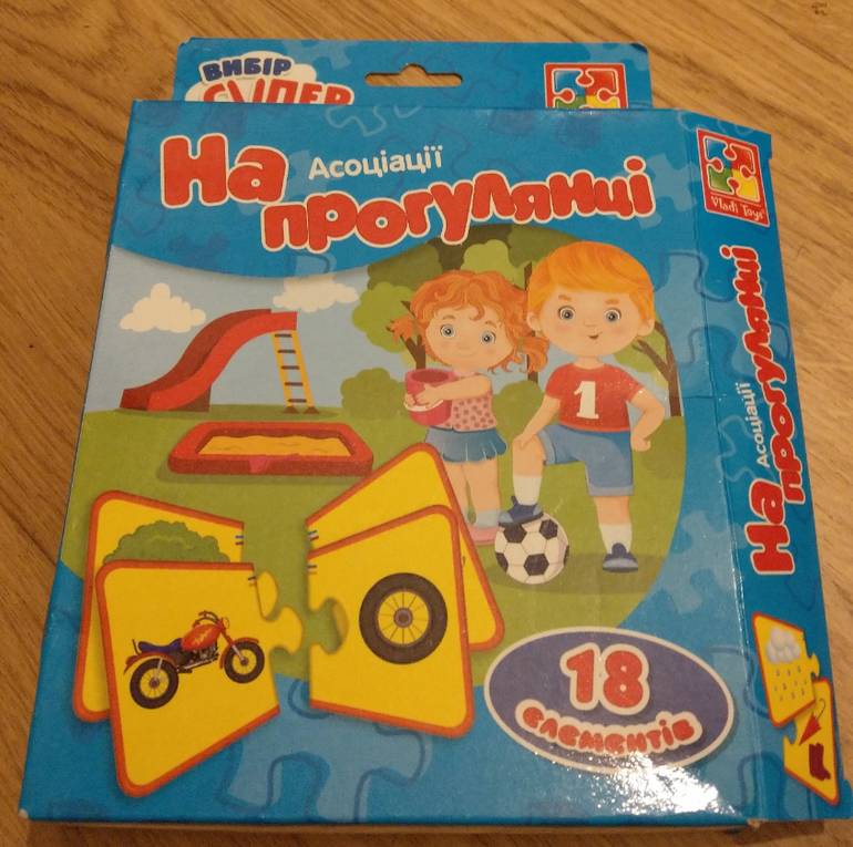Этот мы недавно открыли, все то же, ассоциации. Только картинки с двух сторон, и это поначалу путает.