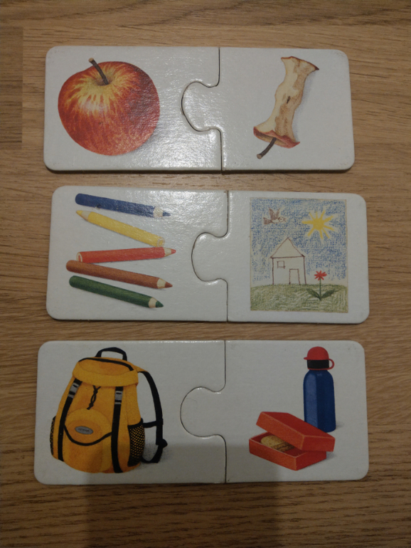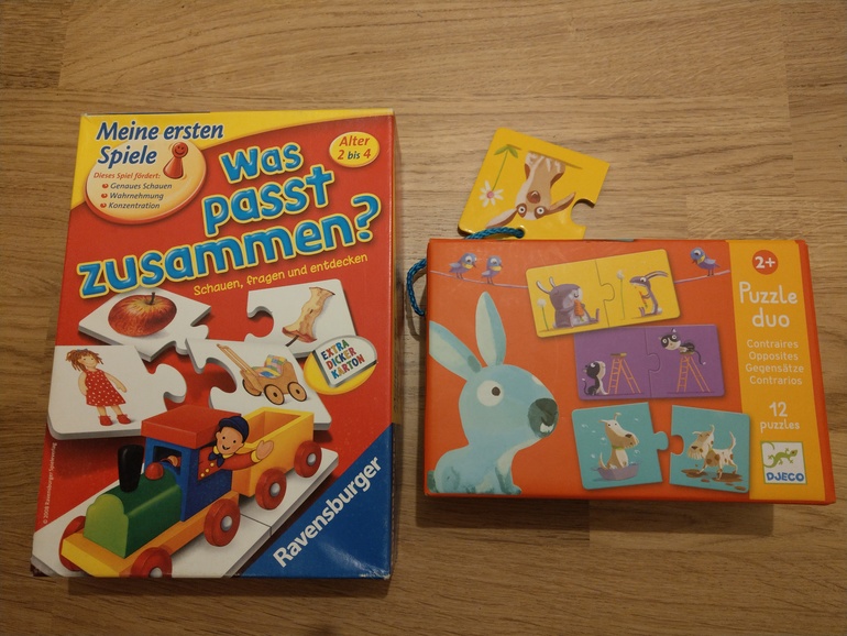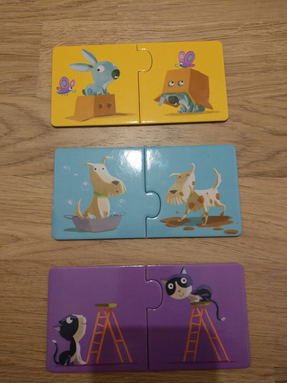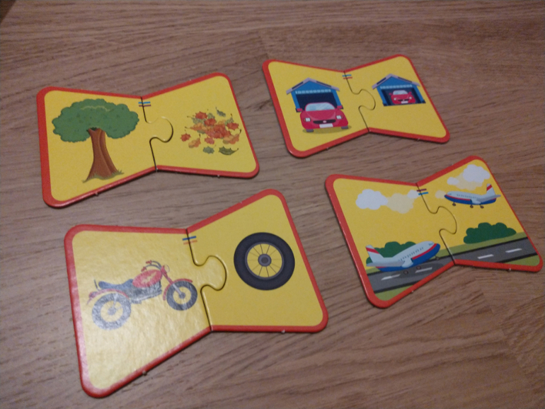 Слева паззлы-половинки найди подходящее по смыслу, справа противоположности. Справа от джеко конечно качество и графика гораздо приятнее. Любим и те, и те. Тим уже сам все собирает довольно быстро, скоро можно убирать насовсем.