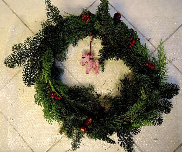 В том году венок мы на дверь не делали, как-то желания не было, а в этом это именно то, с чего началась моя фантазия, когда я увидела этого милашку-олененка.